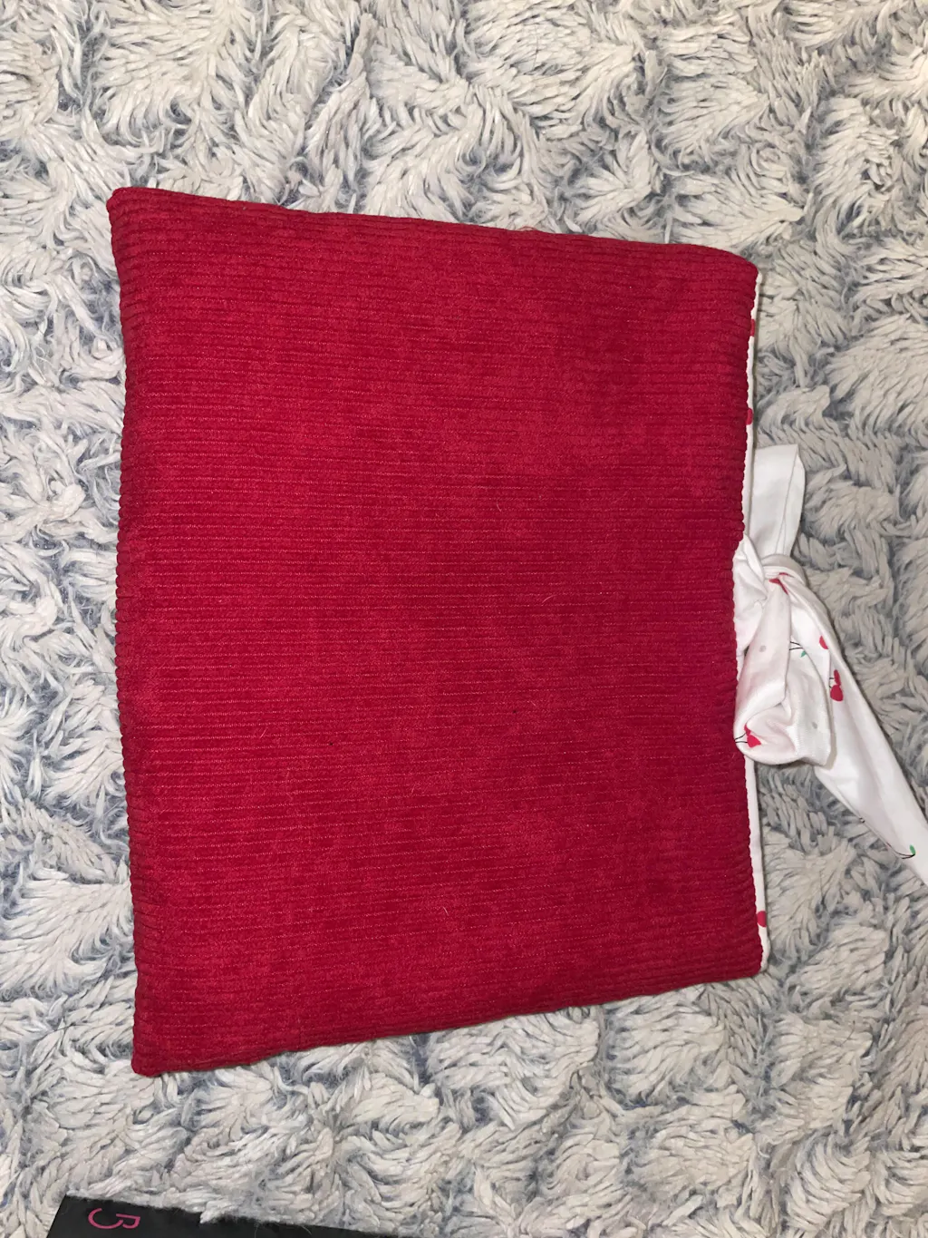 Je ne conseille pas de placer le velours à l’intérieur de la pochette !